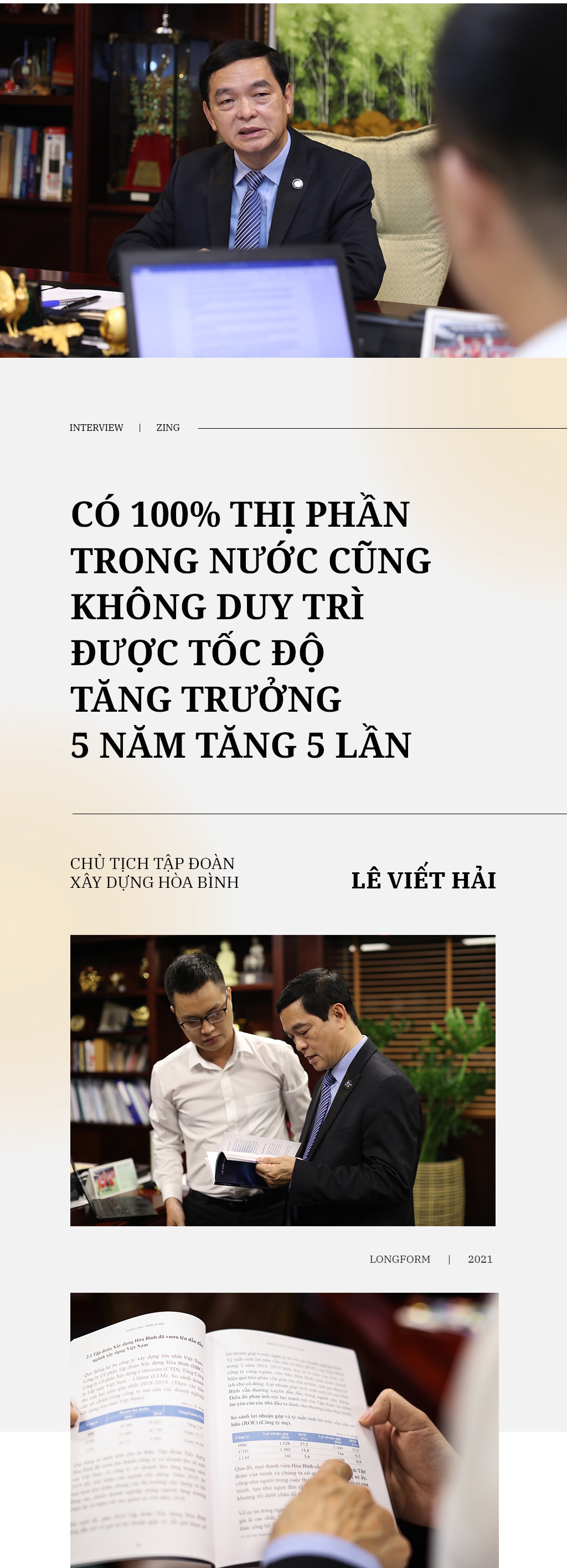 Hòa Bình có giành 100% thị phần trong nước cũng không duy trì được tốc độ 5 năm tăng trưởng 5 lần. Với tốc độ đó, doanh thu của Hòa Bình sẽ lớn hơn tổng sản lượng của cả ngành xây dựng Việt Nam sau 10 năm nữa. Điều này không thể xảy ra. Chính vì thế, Hòa Bình không thể chỉ ở trong nước mà phải ra nước ngoài.