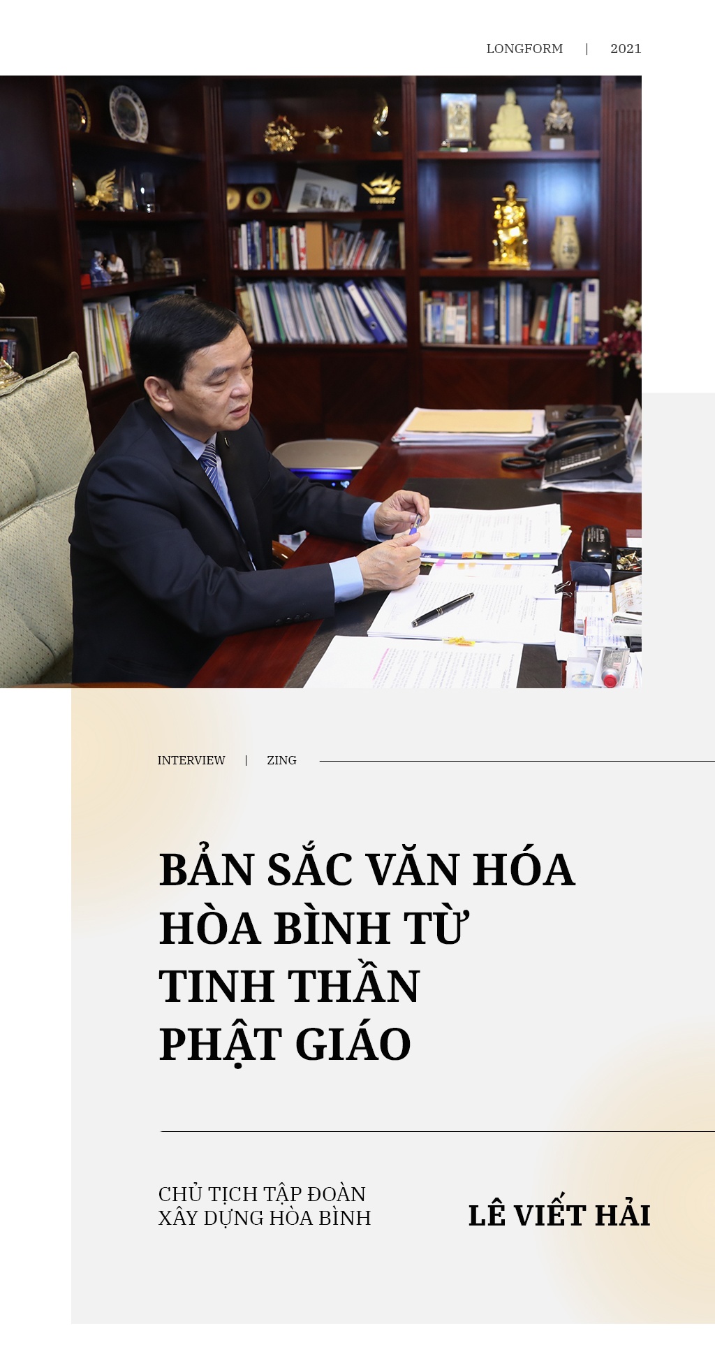 Ông Hải bắt đầu buổi phỏng vấn với Zing khi đồng hồ điểm 18h trong phòng làm việc rồi tiếp tục một cuộc họp khác lúc 20h. Căn phòng được bài trí tỉ mỉ với nhiều tượng Phật. Phía sau bàn làm việc, ảnh chân dung bố mẹ ông được treo trang trọng. Còn đối diện là phòng CEO 29 tuổi Lê Viết Hiếu, con trai ông Hải, người được bổ nhiệm vào tháng 7/2020.