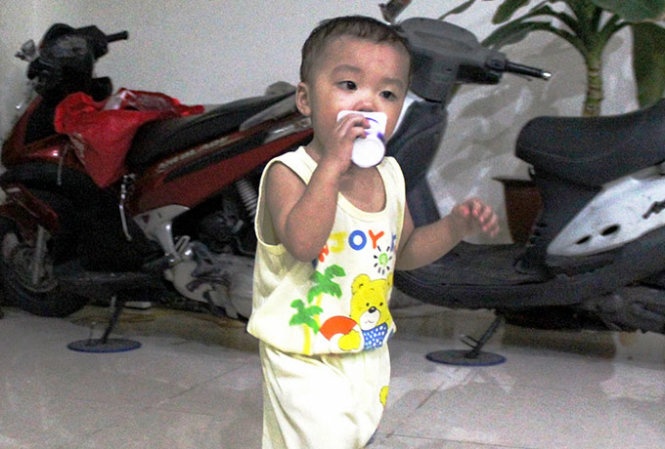 Bé trai hiện đang được chăm sóc chu đáo tại nhà của một cán bộ UBND phường 1. Tại đây, bé vẫn vui chơi, khỏe mạnh, chạy tung tăng. Bé hay chạy đến tủ lạnh mở cửa để người lớn lấy đá ăn, sữa uống.