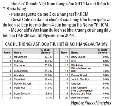 Ông Hoàng Bảo Nguyên Quỳnh, Trưởng phòng Marketing phụ trách thương hiệu Dunkin’s Donuts, cũng cho rằng: “Với khoảng 51% dân số dưới độ tuổi 39, Việt Nam có một thị trường tiềm năng với dân số khá trẻ và cà phê được xem là một phần không thể thiếu trong cuộc sống hằng ngày của họ. Hơn nữa, theo thông tin nghiên cứu thị trường, thực phẩm đảm bảo an toàn vệ sinh thực phẩm, hương vị ngon và không phải đợi lâu, tiện lợi là 3 lý do hàng đầu mà khách hàng ưa chuộng thức ăn nhanh. Đây cũng là điểm mạnh của Dunkin’Donuts”. Vì vậy, mục tiêu của Dunkin’ Donuts Việt Nam trong năm 2014 là mở thêm từ 7-8 cửa hàng.