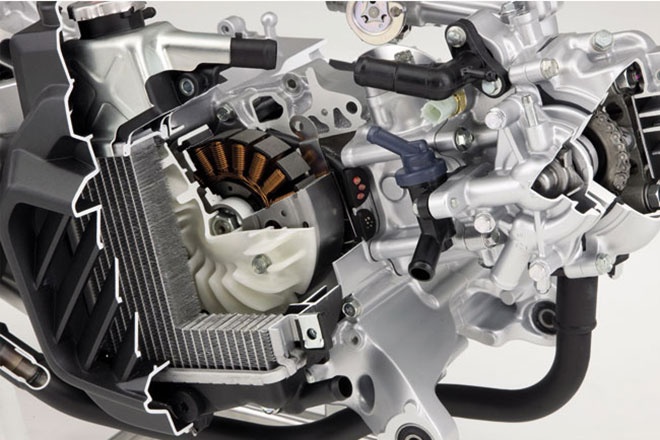 Đường kính và hành trình piston ở mức 52.4 mm x 57.9 mm với tỉ số nén: 11.0:1. Piston và xy-lanh được làm bằng nhôm đúc với quạt tản nhiệt hiệu suất cao, ốp quạt cấu trúc mới, lá tản nhiệt số lượng nhiều và mỏng hơn.