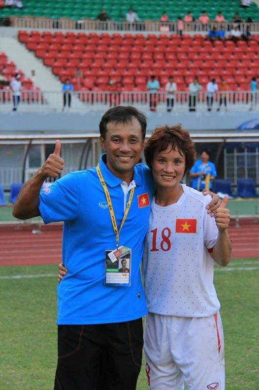 | Tiền đạo Minh Nguyệt đăng ảnh chụp cùng HLV Takashi. |