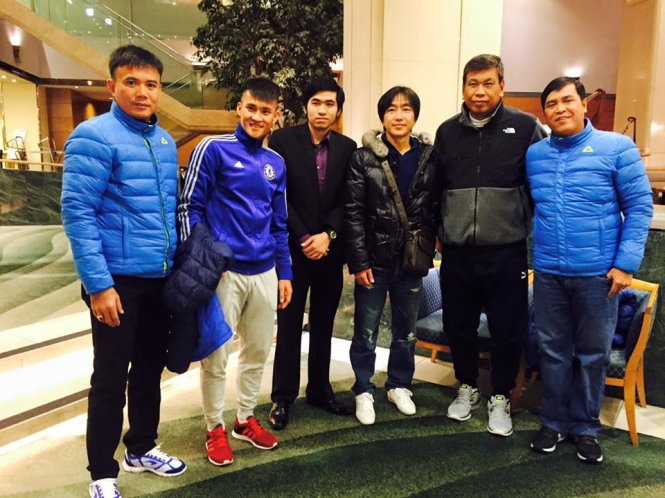 Trước khi tới sân cổ vũ ĐT nữ Việt Nam thi đấu, HLV Miura tới khách sạn nơi CLB Bình Dương đóng quân tại Tokyo để thăm học trò cũ Công Vinh và các trợ lý.