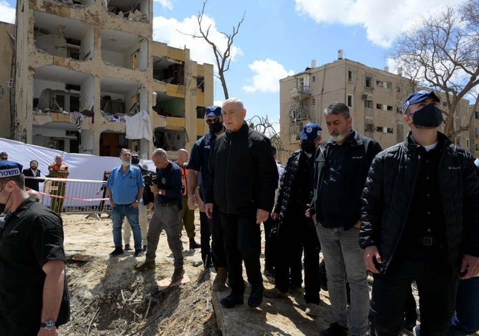 Thủ tướng Israel Benjamin Netanyahu ngày 23/3 đã đến thăm hiện trường vụ tấn công của Iran tại thành phố Arad, miền Nam Israel, theo hình ảnh do chính phủ Israel cung cấp.