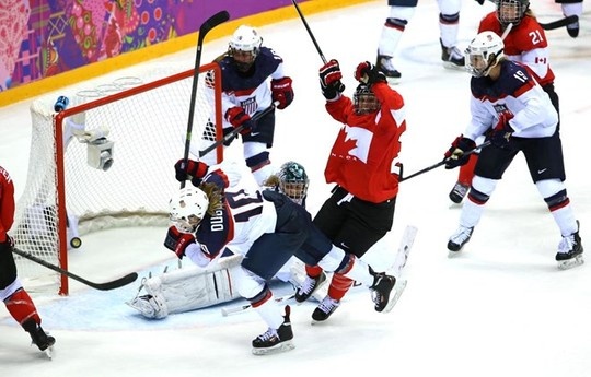 | Canada lội ngược dòng thắng Mỹ trong trận chung kết khúc côn câu cầu nữ. Ảnh: AP. |