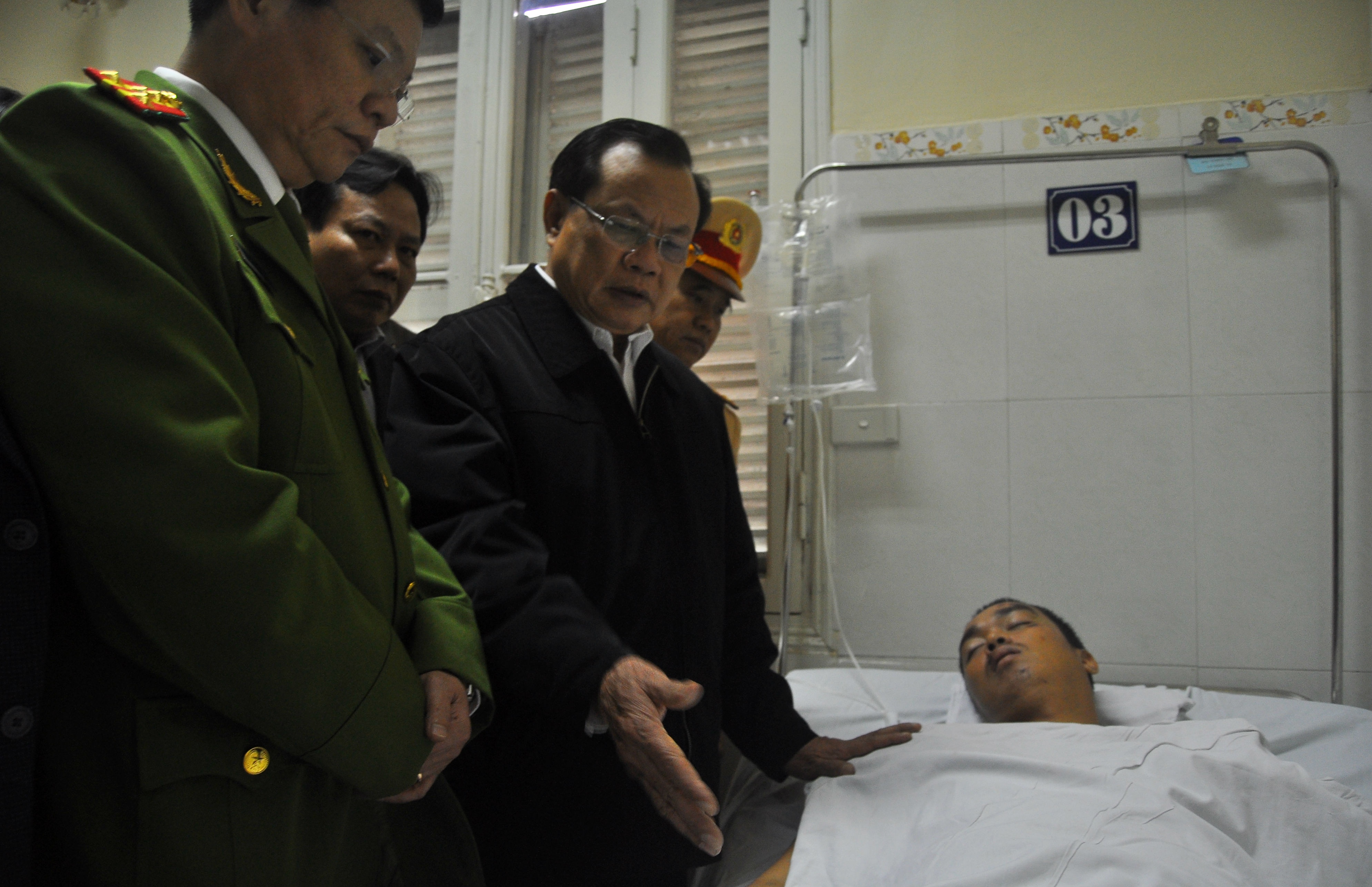 Ngày 15/12, ông Phạm Quang Nghị - Ủy viên Bộ Chính trị, chỉ đạo Thành ủy Hà Nội tới thăm thượng úy Nguyễn Quốc Đạt (Đội CSGT số 5 - Công an Hà Nội) bị thương trong lúc làm nhiệm vụ.
