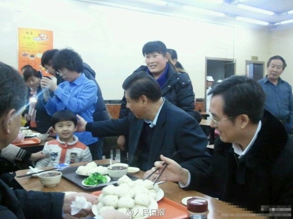 | Chủ tịch Trung Quốc nói chuyện với mọi người trong lúc ăn tại nhà hàng màn thầu ở Bắc Kinh hôm 28/12. Ảnh: chinasmack.com |