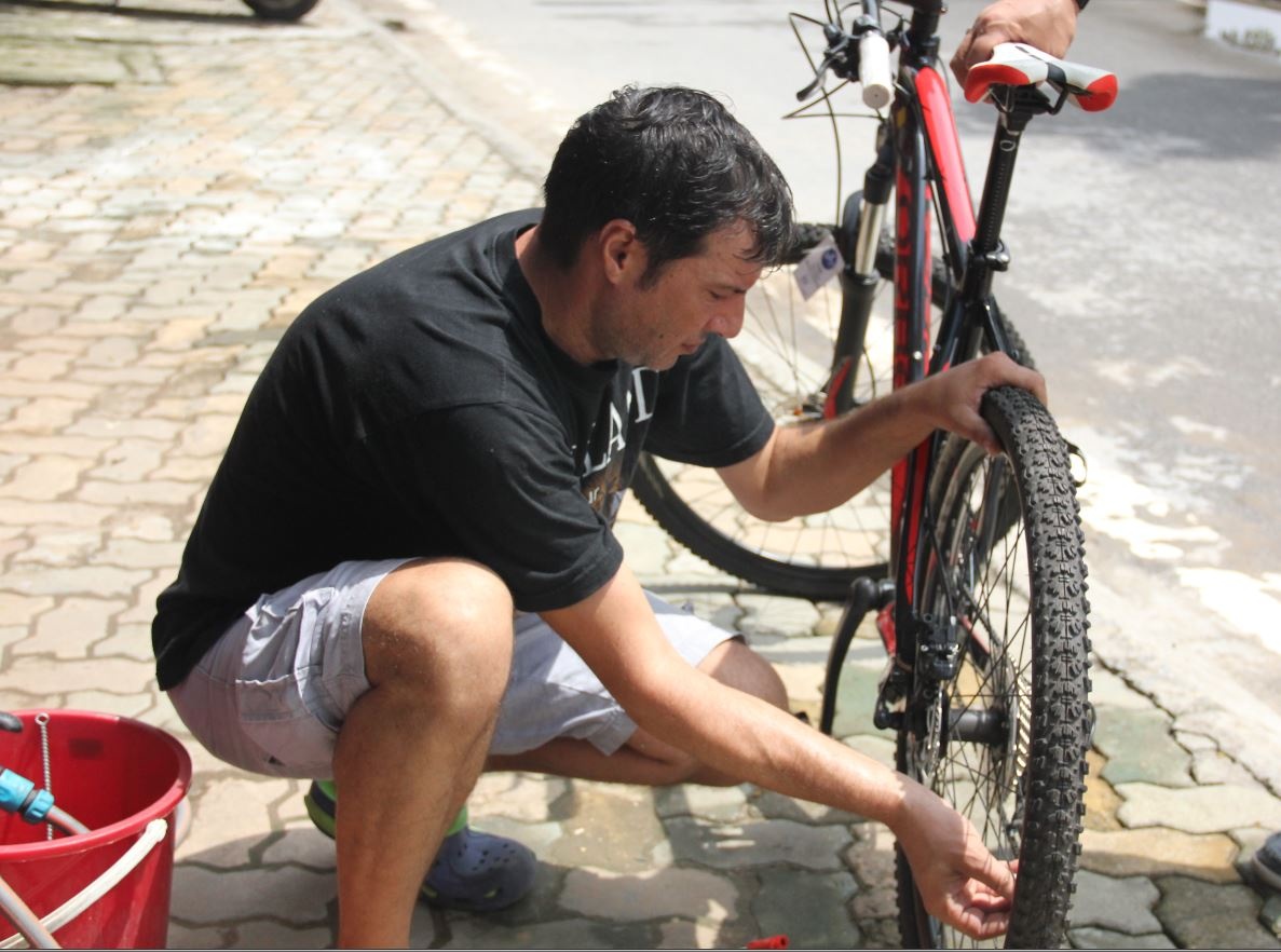 Mỗi lần xe đạp bị sự cố, Rainer - một người Đức sống ở Việt Nam phải bỏ 10.000 - 40.000 đồng cho một lần bơm hoặc vá xe ngoài vỉa hè. Tuy nhiên, gần đây Rainer được phục vụ bơm, vá miễn phí tại cửa hàng của Guin trên đường ven hồ. “Hễ chiếc xe có vấn đề tôi đều mang đến cửa hàng nhờ Guim giúp, anh ấy xem xét kỹ và sửa rất nhanh. Đặc biệt bơm và vá xe không mất tiền”, Rainer nói.