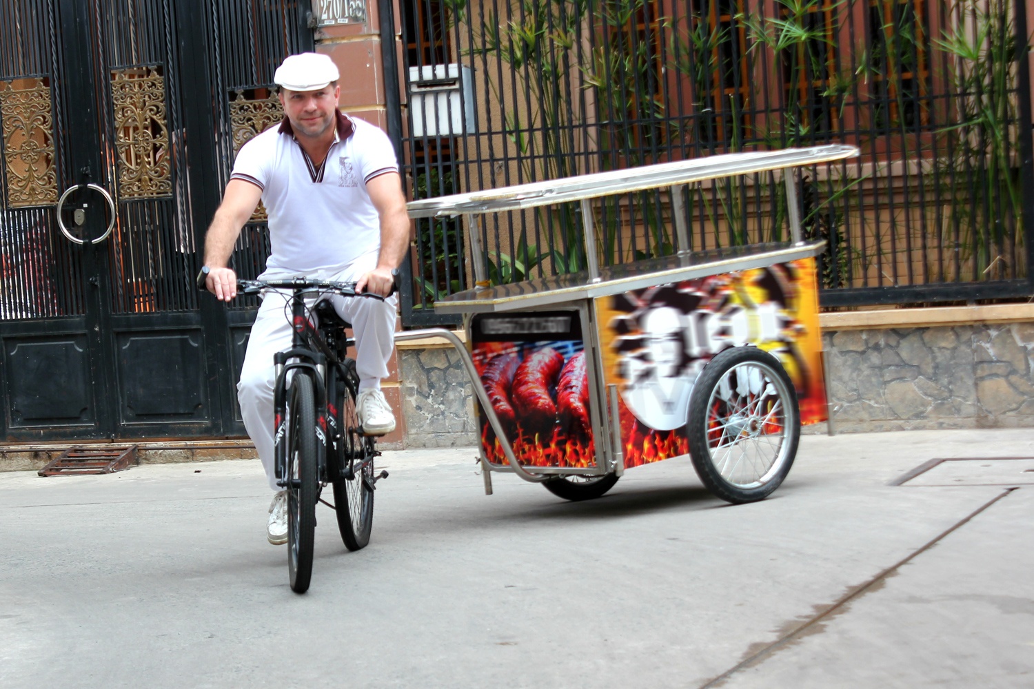 Ông Klaus Rutt, người Đức, vốn nổi tiếng với hàng xúc xích Đức truyền thống của gia đình được bán trên xe tải ở đường Phan Xích Long, quận Phú Nhuận, TP HCM. Vì muốn phát triển hệ thống bán lẻ xúc xích của mình, ông đã cho sản xuất hàng loạt gian hàng riêng được kéo bằng những chiếc xe đạp thể thao.