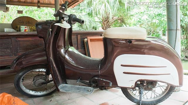 | Theo ông Vinh, chỉ những ai trở về từ New Caledonia mới sở hữu một chiếc xe như vậy. Mobylette AV89 thật sự là một mẫu xe tuyệt vời, khi khối động cơ 50cc của xe có thể đạt tốc độ 70 km/h. Đây là chiếc xe nhanh nhất trong thời điểm những mẫu xe 70cc đang phổ biến. |