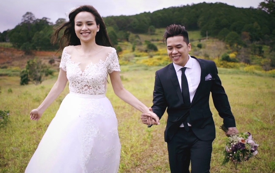 Trong clip nói về hành trình tình cảm của Diễm Hương và Quang Huy, ông xã người đẹp xuất hiện giữa bối cảnh lãng mạn, nên thơ, được quay ở Đà Lạt. Anh kể lại chuyện tình yêu đầy trắc trở nhưng cũng không kém phần lãng mạn và hạnh phúc với hoa hậu. Ảnh: Chụp màn hình.