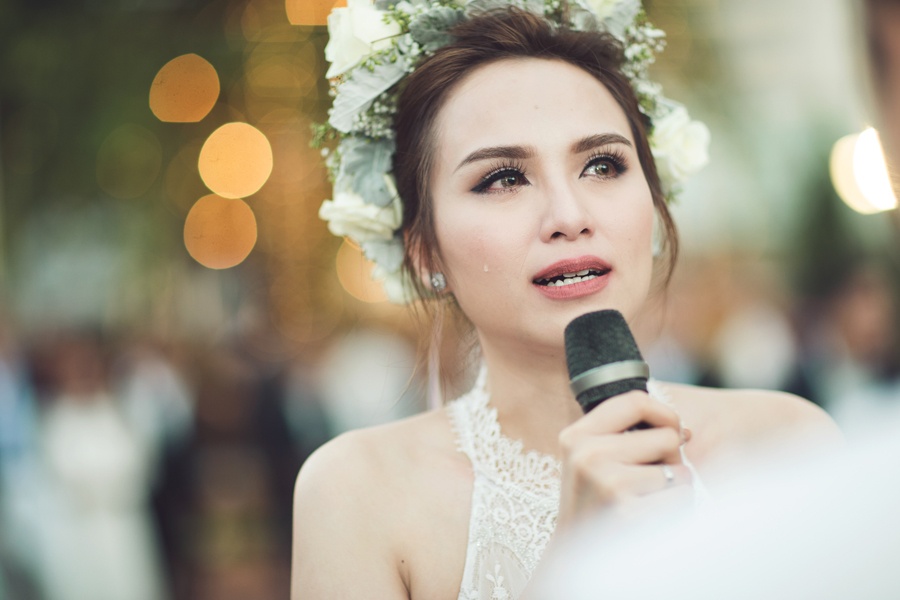 Trong đám cưới diễn ra vào ngày 29/11, Diễm Hương rơi nước mắt khi kể lại hành trình tình yêu của họ. Cô gửi lời cám ơn đến bạn bè, người thân, đặc biệt là ông xã luôn ở cạnh ủng hộ, động viên tinh thần và trở thành động lực để cô vượt qua những khó khăn trong cuộc sống. Ảnh: An Trần.
