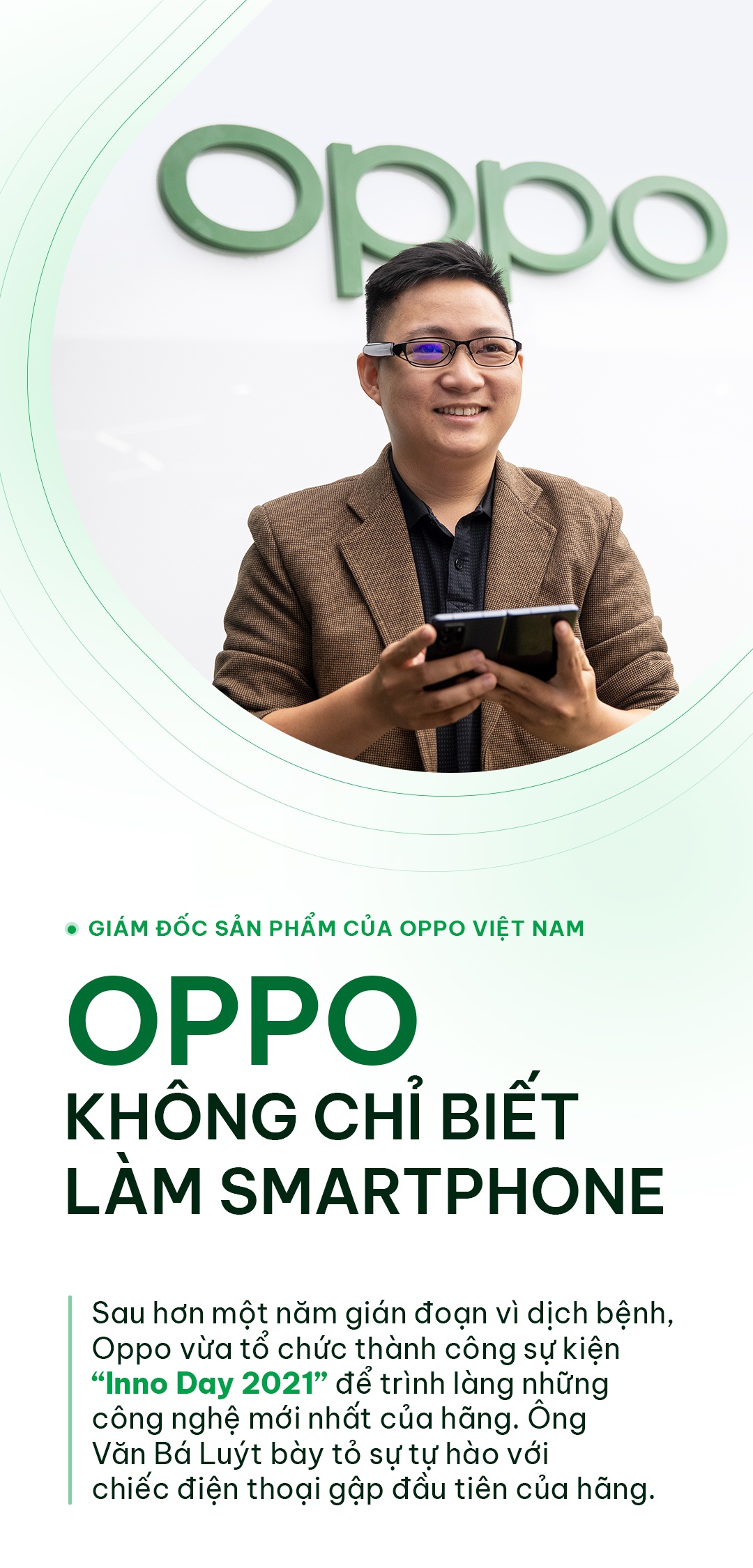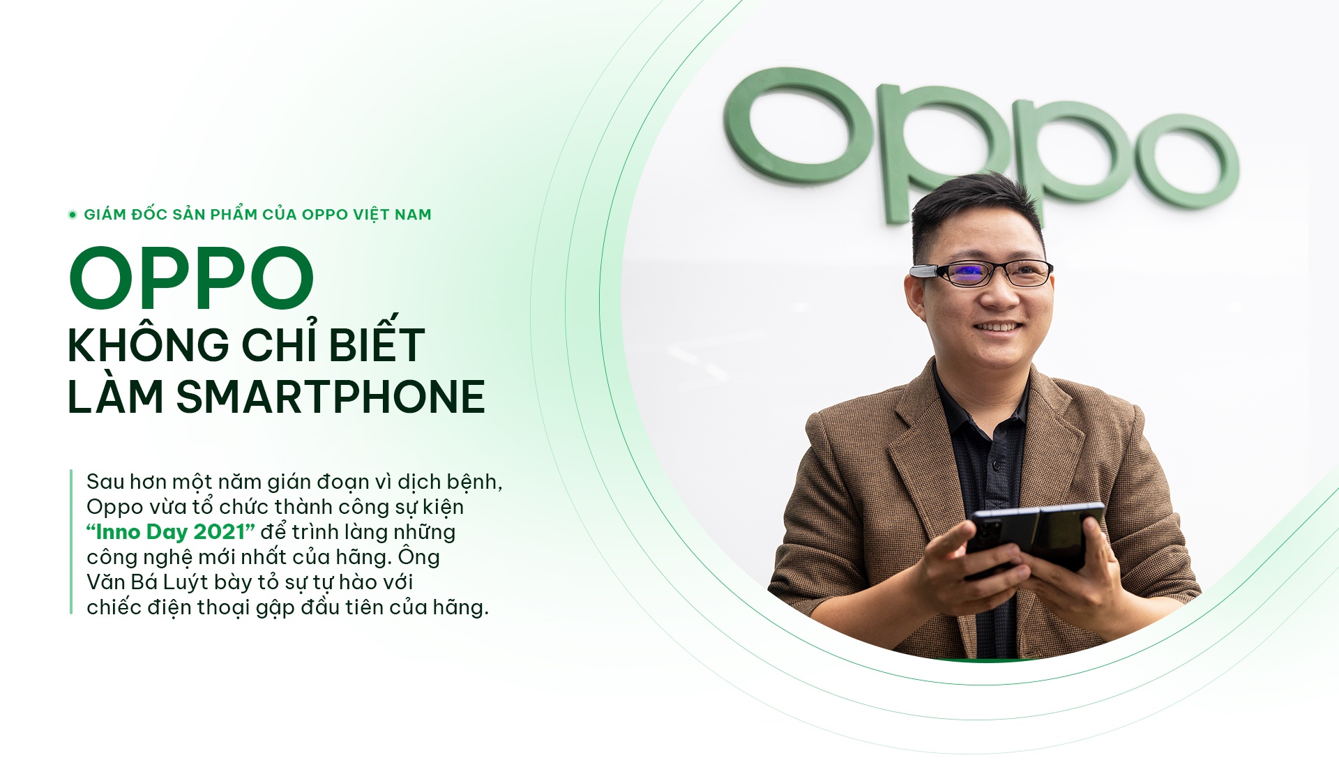 Ông Văn Bá Luýt, Giám đốc sản phẩm của Oppo Việt Nam, bày tỏ sự tự tin về hàm lượng công nghệ trong các sản phẩm mà công ty ra mắt tại sự kiện Inno Day 2021. Điện thoại gập Oppo Find N, kính thực tế hỗ trợ Air Glass và NPU hình ảnh MariSilicon X là những thiết bị định hình thương hiệu Oppo trong tương lai.