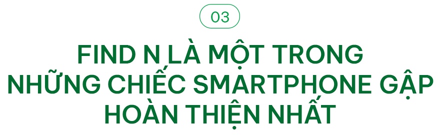 - Chúng tôi tin Find N cung cấp trải nghiệm tổng thể cải tiến hơn so với các smartphone gập trên thị trường với 3 lý do chính: Thiết kế bản lề, tỷ lệ màn hình và cải tiến phần mềm. Dù đi sau nhưng Oppo có nhiều năm nghiên cứu, phát triển sản phẩm. Chúng tôi tự tin có thể khắc phục những vấn đề mà dòng điện thoại gập khác đang gặp phải.