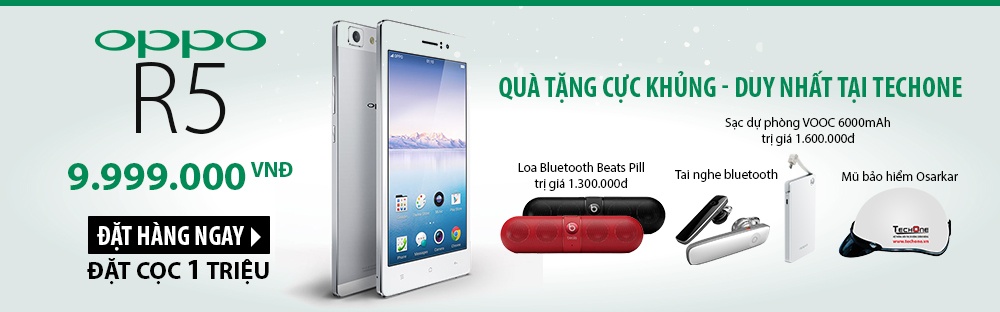 OPPO R5 là một smartphone cao cấp đáng để khách hàng sở hữu với nhiều yếu tố nổi bật đem đến rất nhiều trải nghiệm mới mẻ và thú vị cho người sử dụng. Hiện tại, OPPO R5 đang có mức giá 9,99 triệu đồng và khách hàng đã có thể đặt trước sản phẩm này tại hệ thống siêu thị điện thoại TechOne hoặc đặt hàng online trên website của TechOne tại đây.