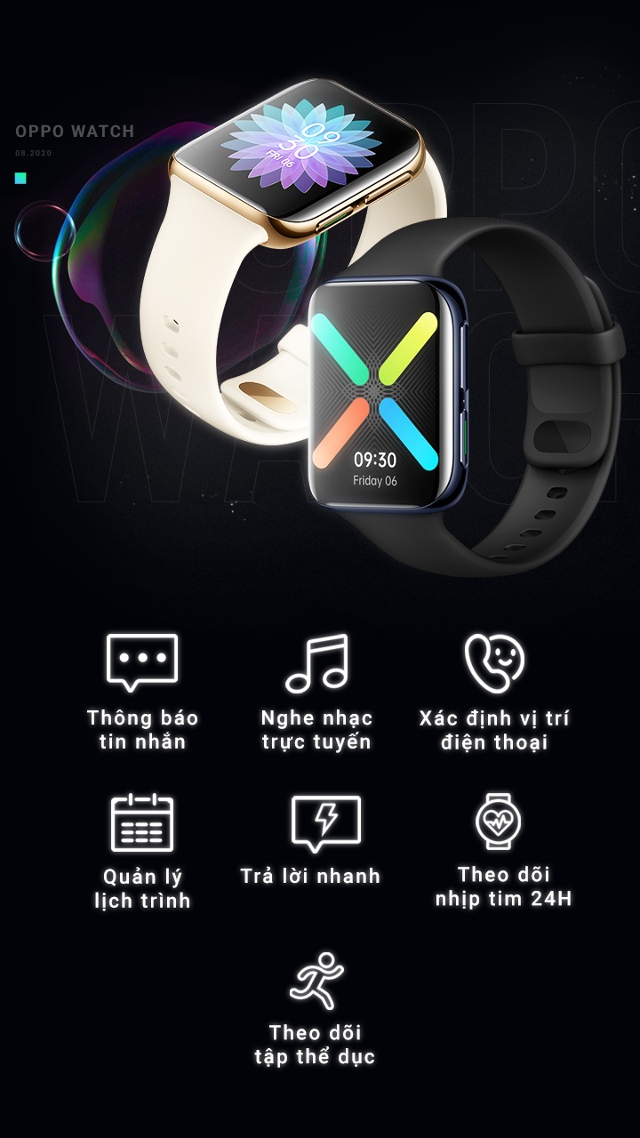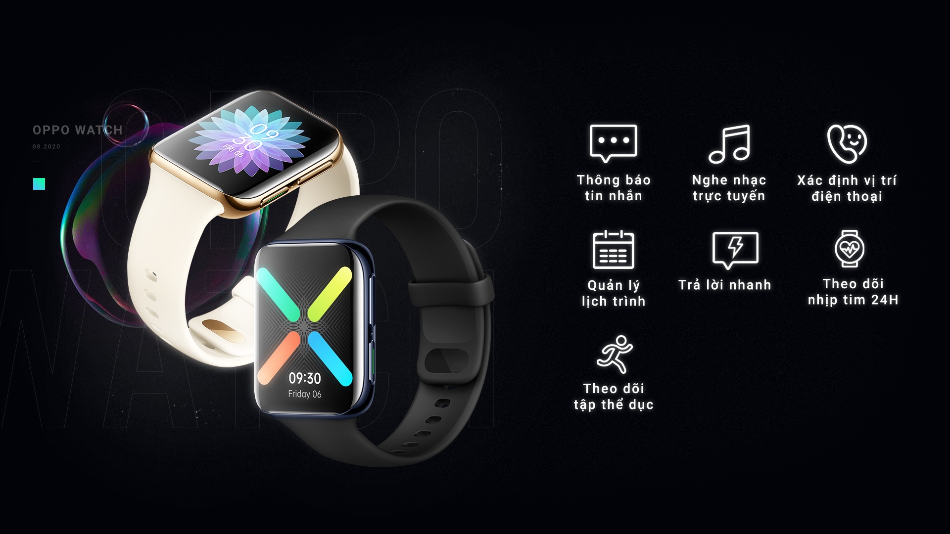 Oppo Watch là sản phẩm đồng hồ thông minh đầu tiên, đóng vai trò chiến lược trong hệ sinh thái IoT của Oppo. Oppo Watch có 2 phiên bản 41 mm và 46 mm, được trang bị hệ điều hành WearOS, phù hợp với các ứng dụng và dịch vụ cốt lõi của Google đối với thiết bị đeo tay. Bên cạnh khả năng sạc 100% pin trong 75 phút nhờ công nghệ Watch VOOC, Oppo Watch còn có các tính năng chăm sóc sức khỏe và thể thao.