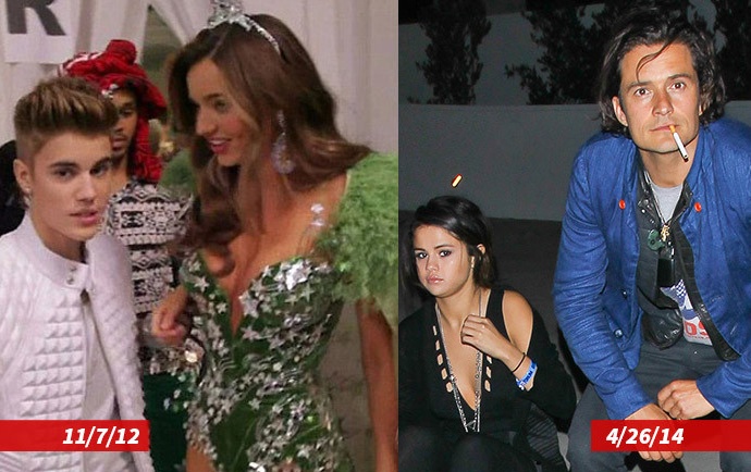 Justin Bieber từng bị cho là một trong những lý do làm đổ vỡ cuộc hôn nhân giữa Orlando Bloom và Miranda Kerr khi có những hành động thân mật cùng cô người mẫu xinh đẹp tại show diễn thời trang cuối năm 2012. Trong khi đó, cuối tháng 4 vừa qua, Orlando Bloom cũng bị bắt gặp đi chơi cùng tình cũ của Justin Bieber.
