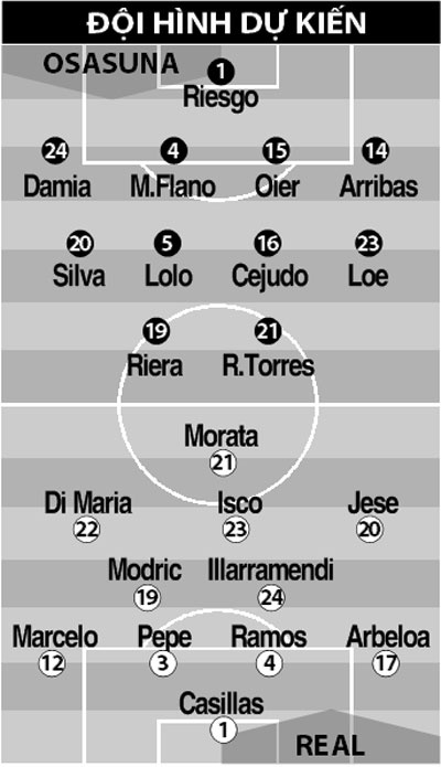 Phải nhấn mạnh rằng, tinh thần các cầu thủ Real Madrid đang rất phấn khích sau khi họ rút ngắn khoảng cách với 2 đội xếp trên trong cuộc đua vô địch La Liga mùa này xuống còn 3 điểm. Ở La Liga, họ cùng với Barca đang là đội có hàng công mạnh nhất với 53 bàn thắng – con số quá vượt trội so với 17 lần sút tung lưới đối phương của Osasuna.