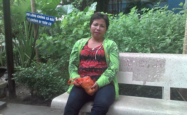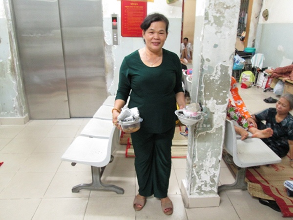 Ăn vội xong chén cơm trưa, chị Trần Thị Ngọc Châu (45 tuổi, huyện Củ Chi, TP.HCM) cố che đi sự mệt mỏi trên đôi mắt đã thâm quầng ngồi tiếp chuyện với tôi ở Bệnh viện Nguyễn Tri Phương, (quận 5).