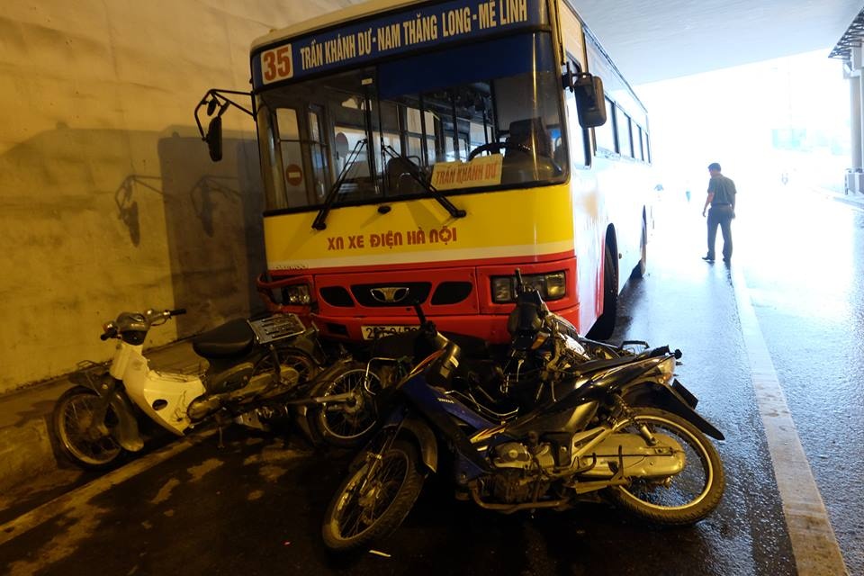 Theo lời kể, 6 xe máy bị xe buýt tông trúng và kéo lê 5-6 m trong hầm.