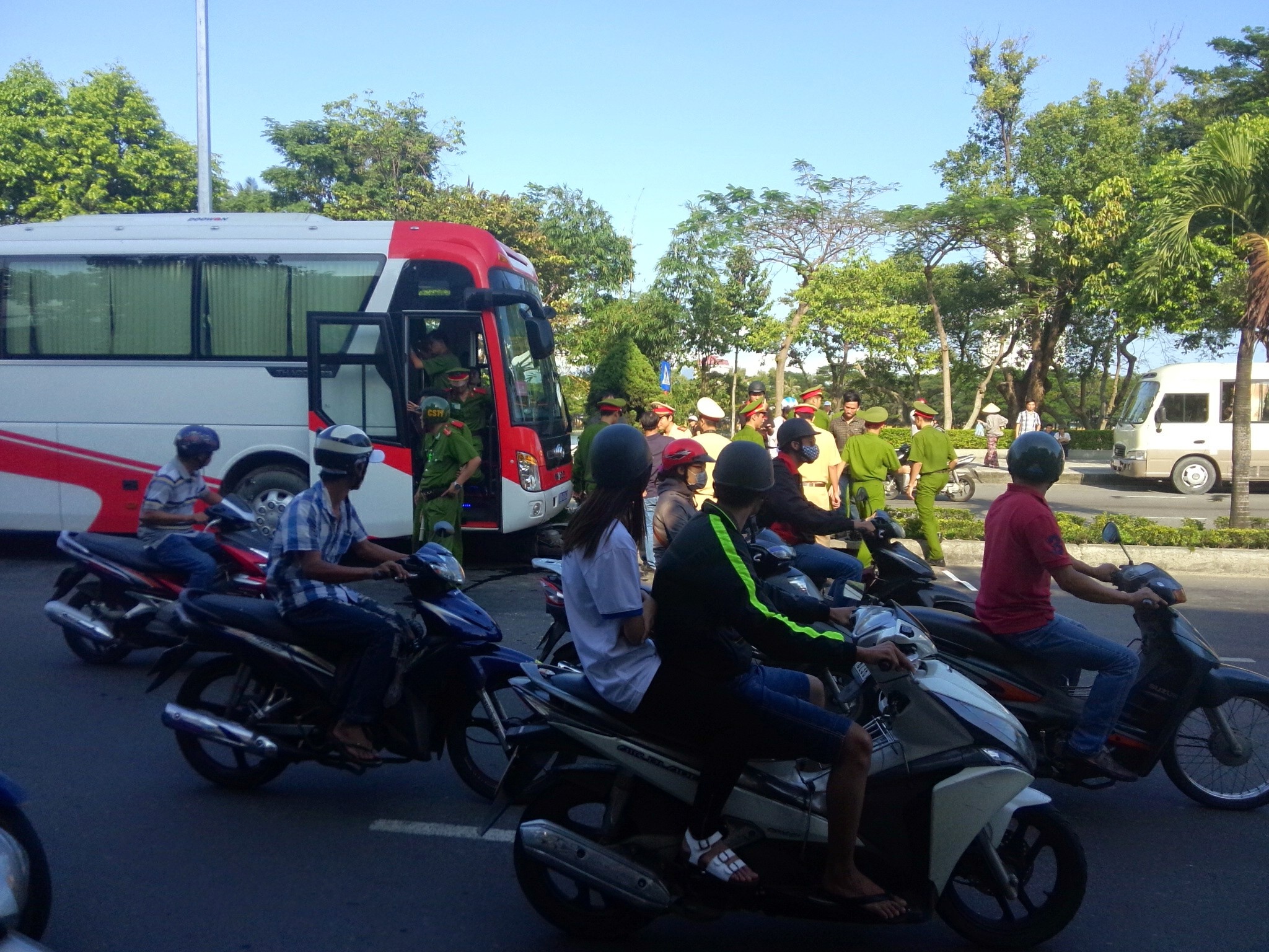 | Ôtô chở gần 30 học viên cảnh sát đi thực tế khi đến Đà Nẵng gây tai nạn. Ảnh: Đ. Nguyên. |