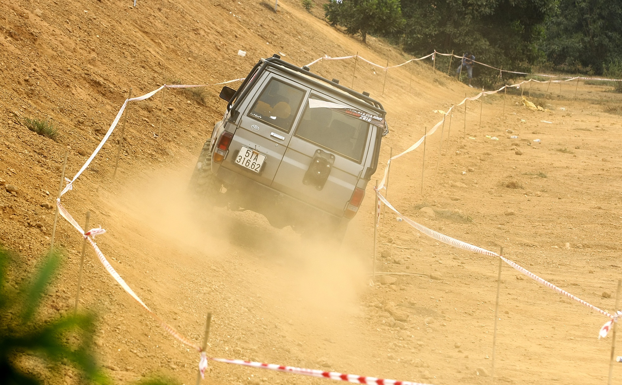 Chạy dọc dốc nghiêng 35 tới 40 độ đòi hỏi người lái sẽ phải tính toán tốc độ và góc đánh lái hợp lý để chiếc xe vừa di chuyển ổn định trên dốc mà vẫn đảm bảo yếu tố thời gian.