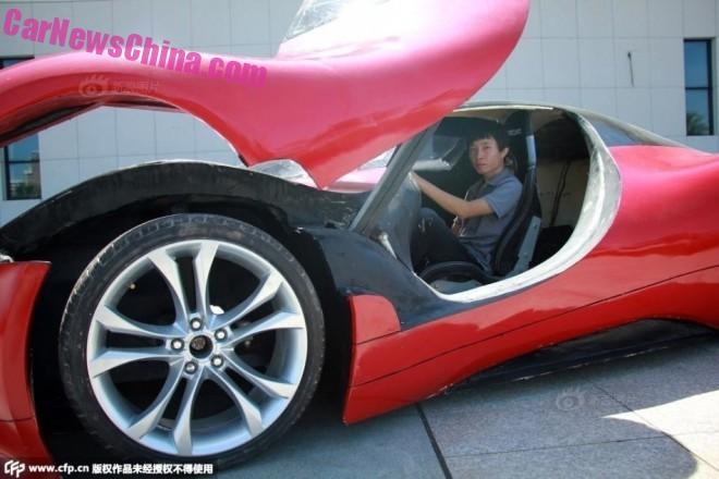 Vật liệu làm nên chiếc xe do công ty của người cha chàng kỹ sư cung cấp. Một số chi tiết khác được Chen tìm kiếm và mua trên Internet. Mẫu xe có cách mở cửa đặc biệt, khi cánh cửa nhô lên khỏi bánh trước và hệ thống treo. |