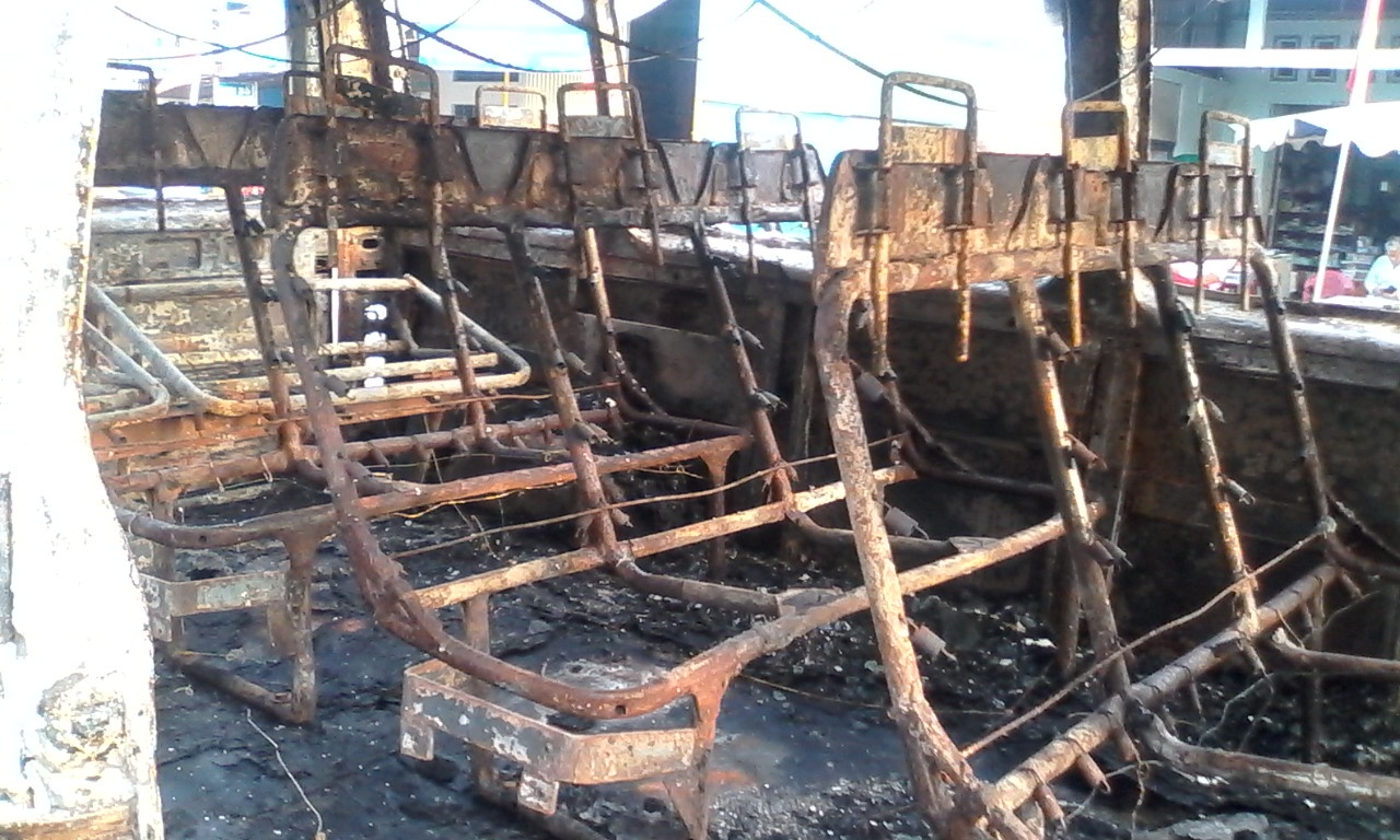 Khi 16 người xuống đất hết thì bất ngờ đầu xe có khói, sau đó ngọn lửa bốc lên.