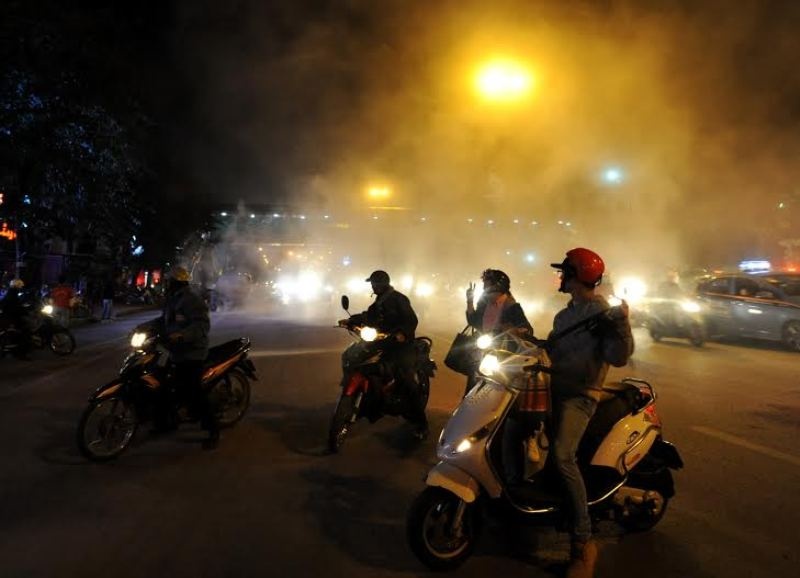 | Vụ việc xảy ra lúc gần 20h tối 14/12. Ngay sau khi phát hiện khói và lửa bùng lên, lái xe đã nhanh chóng vào các hàng ăn gần đó để mượn bình chữa cháy để dập. |