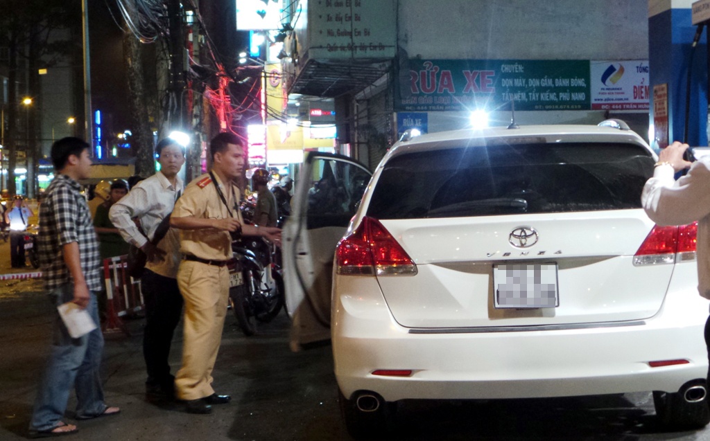 | Theo người dân, thời điểm trên, một ôtô bốn chỗ hiệu Toyota màu trắng lưu thông trên đường Trần Hưng Đạo, hướng từ quận 1 đi quận 5. |