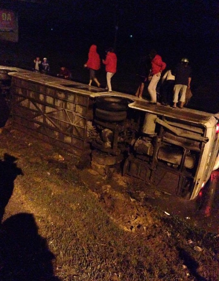 Tối 10/3, ôtô 54 chỗ chở công nhân một công ty ở Bắc Ninh di chuyển trên QL37 hướng ra cao tốc Hà Nội - Lạng Sơn. Tới địa phận làng Dục Quang, thị trấn Bích Động (Việt Yên, Bắc Giang), xe bất ngờ đâm vào vệ đường, sau đó lật nghiêng xuống ruộng.