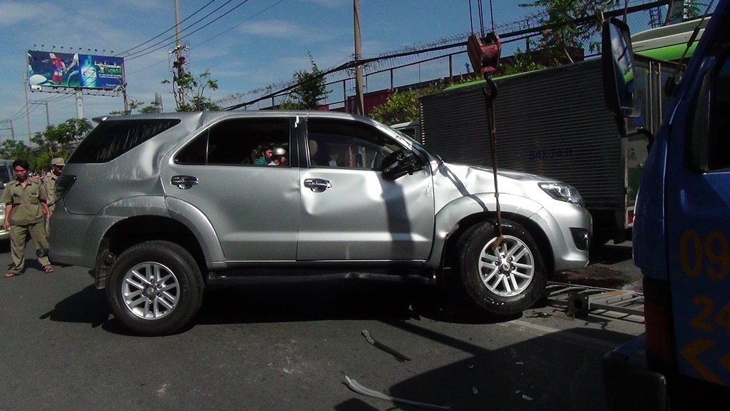 | Tài xế Hưng và người phụ nữ may mắn chỉ bị xây xát nhẹ. Giao thông trên đường Nguyễn Tất Thành ùn tắc nghiêm trọng. Một xe cứu hộ đã đến hiện trường di dời chiếc ôtô gặp nạn bất ngờ. |