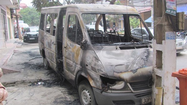 Tại hiện trường, chiếc xe bị cháy trơ khung. Đến 9h cùng ngày, toàn bộ mạng lưới điện thắp sáng, Internet trong khu phố đã bị cắt.