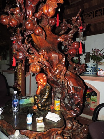 | Ngoài chiếc ôtô, vị sư này còn có những vật dụng rất đắt tiền. Chiếc bàn bằng gỗ tinh xảo này có giá trị khoảng 150 triệu đồng. Sở dĩ có giá đấy vì người dân Chàng Sơn vốn có nghề mộc là nghề truyền thống, họ có thể nhanh chóng định giá. |
