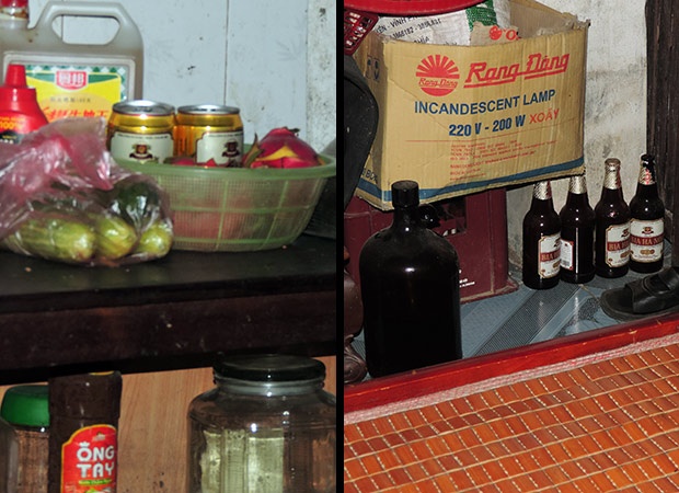 | Tại phòng bếp này, còn thấy rất nhiều vỏ chai bia đã được sử dụng, có cả bia chai, bia lon. |