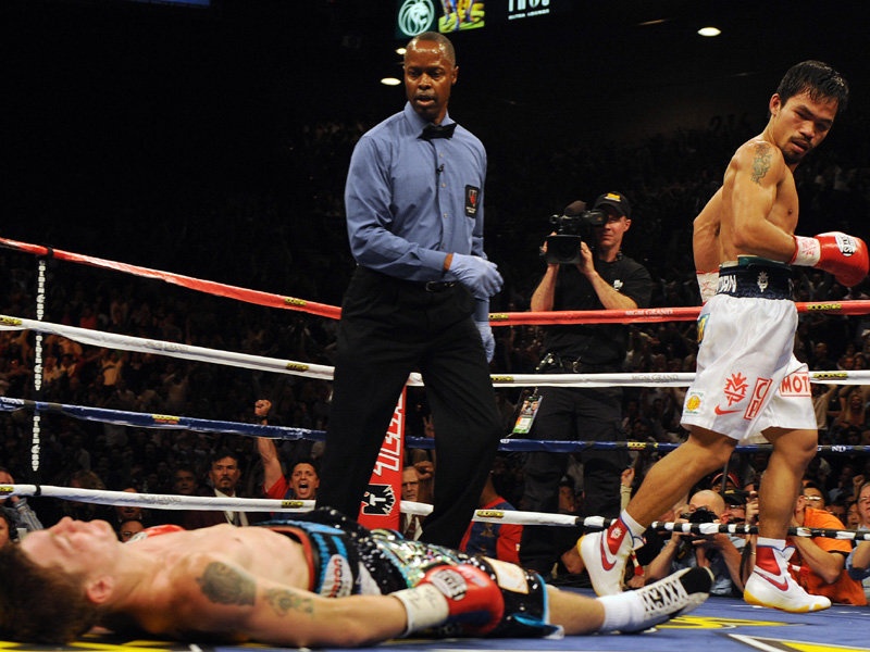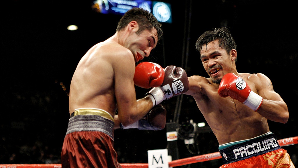 | Tay đấm người Philippines lần lượt hạ bệ võ sĩ lừng danh Oscar de la Hoya. |