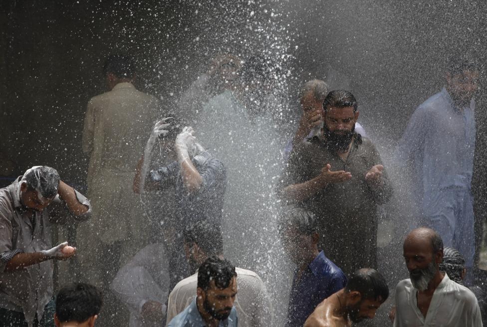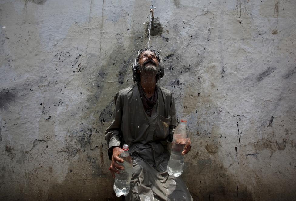 Ông lão hạ nhiệt cơ thể dưới một vòi nước công cộng. Đợt nắng nóng kỷ lục ở Pakistan diễn ra ngay sau đợt nóng kỷ lục, làm chảy nhựa đường ở quốc gia láng giềng Ấn Độ. |