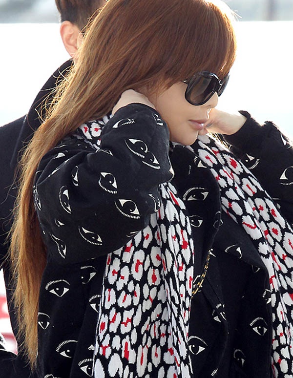 | Diện một chiếc váy ngắn màu đen cùng boots cổ cao, Park Bom khéo khoe được đôi chân dài thẳng tắp, tuy nhiên, gương mặt của cô lại được "ngụy trang" khá kỹ bằng chiếc kính râm bản to và chiếc khăn quàng cổ. |