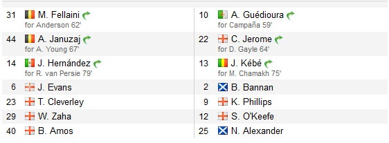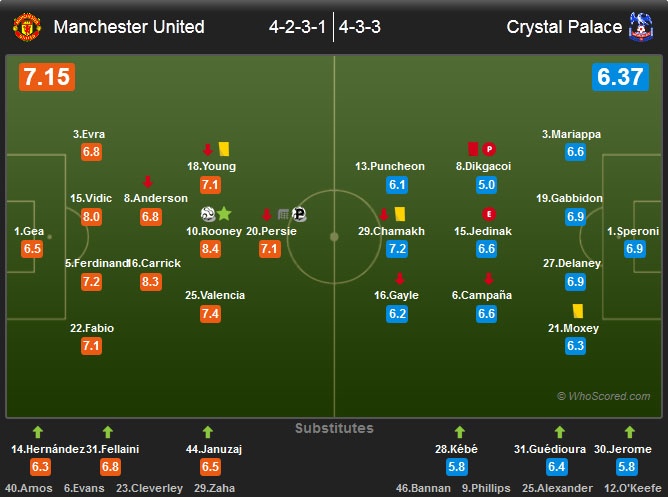 Sự xuất hiện của hai cầu thủ kể trên giúp MU tấn công khởi sắc hơn rất nhiều. Từ phút 66 đến 73, Quỷ đỏ có nhiều tình huống gây sóng gió cho khung thành đội khách. Đáng chú ý là pha vút bóng căng của Fellaini từ ngoài khu vực 16m50 (phút 66) và cú sút căng vọt xà ngang của Persie (phút 68).