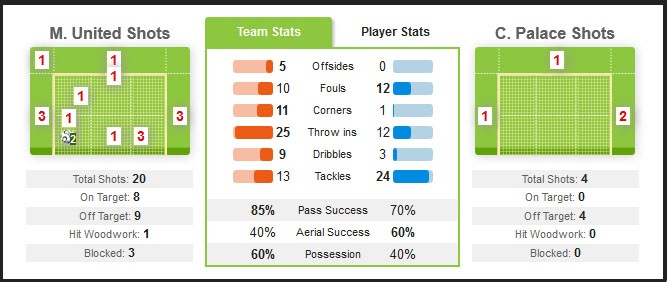 | MU đánh bại Crystal Palace với tỷ số 2-0. |