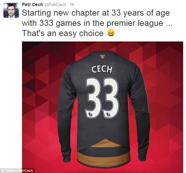 | Thủ môn Petr Cech chia sẻ về việc chọn số áo đấu trên trang cá nhân Twitter. Ảnh: Daily mail. |