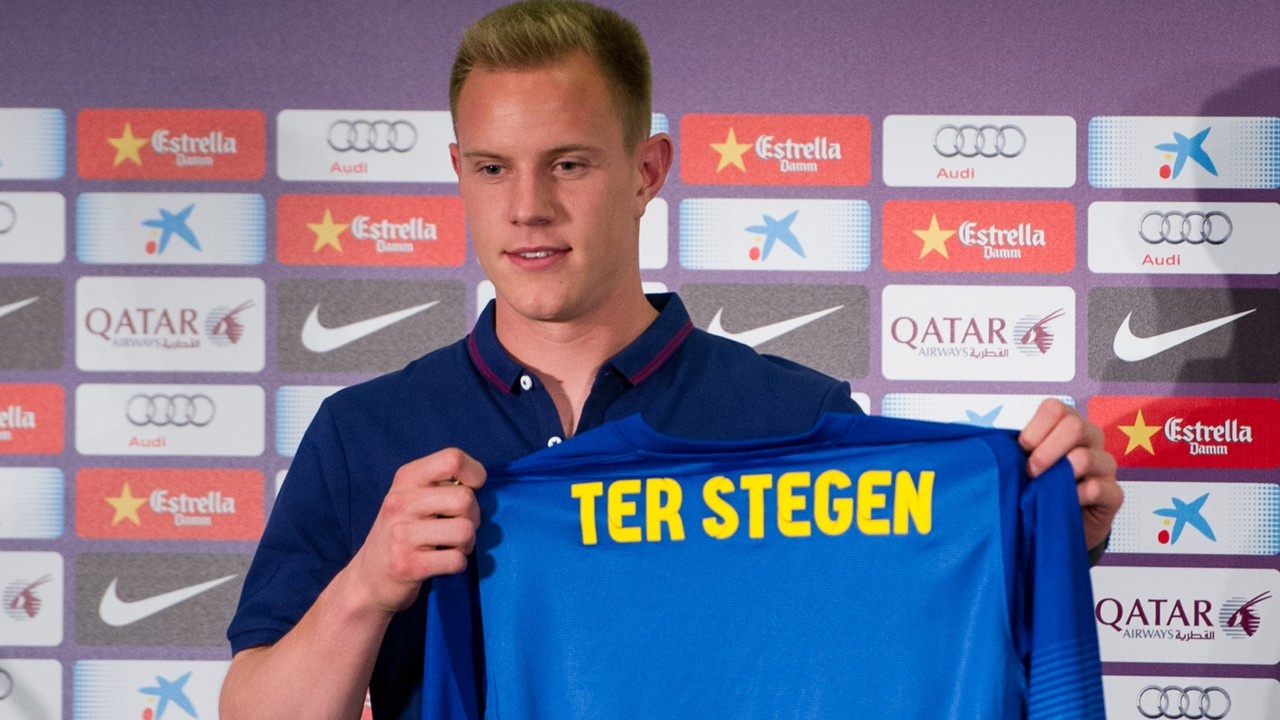 | 10. Marc-Andre Ter Stegen (Monchengladbach tới Barcelona - 14 triệu euro): Thủ môn 23 tuổi người Đức gia nhập Barca hè 2014 với giá 14 triệu euro. Đây là bản hợp đồng thành công của Blaugrana. Ngay mùa đầu tiên thi đấu tại Nou Camp, Ter Stegen giúp Barca lên ngôi vô địch Champions League và Cúp nhà vua. Ảnh: Beinsports. |