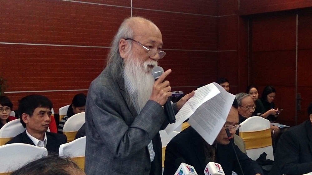 | PGS Văn Như Cương phát biểu tại hội nghị sáng 8/3 do Ủy ban Văn hóa giáo dục thanh thiếu niên và nhi đồng Quốc hội tổ chức. |