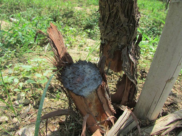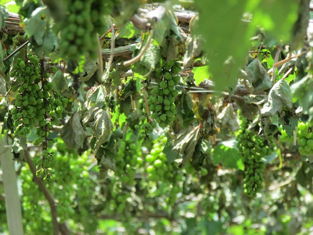 Vườn nho 1.300 gốc này của anh Trương Tấn Tâm ở KP 10, thị trấn Phước Dân. Anh Trương Tấn Tâm cho biết, có 118 gốc nho bị dùng dao chặt ngang gốc, số còn lại chết do có người lén bỏ thuốc diệt cỏ vào bồn pha thuốc xịt nấm. Sau khi gia đình tiến hành xịt nấm cho trái thì toàn bộ rẫy nho đều héo rũ, không thể cứu chữa.
