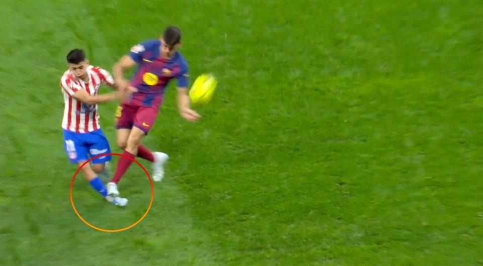 Pha bóng ngay lập tức gây tranh luận. Hình ảnh quay chậm cho thấy Martin chạm bóng trước, nhưng sau đó vẫn va chạm mạnh vào mắt cá chân của Almada. HLV Diego Simeone phản ứng dữ dội khi thẻ đỏ bị hủy, trong khi phía Barcelona hài lòng với quyết định cuối cùng.
