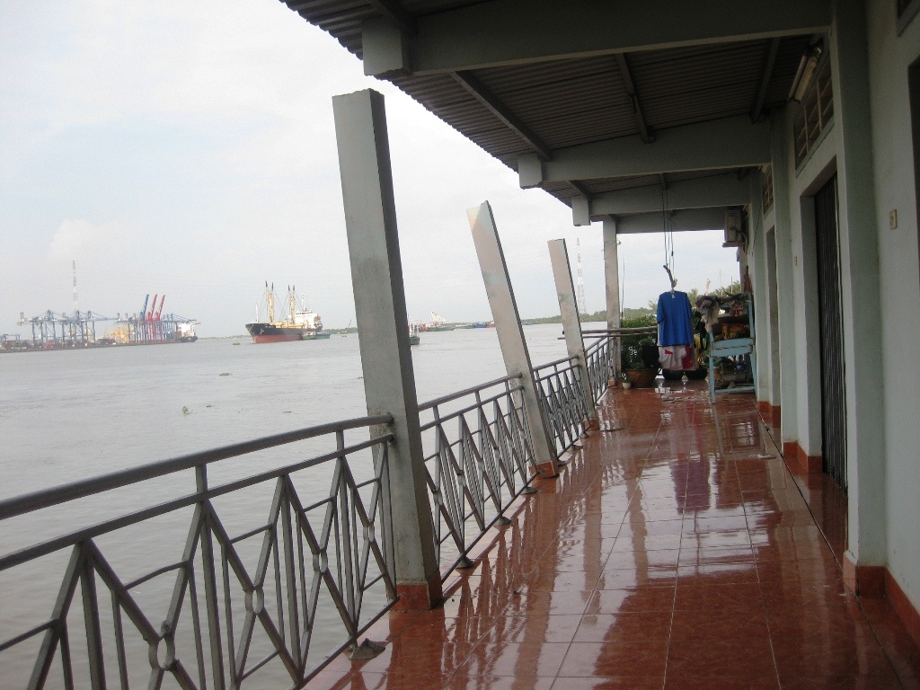 Vụ việc xảy ra lúc 13h15 ngày 25/11 tại bến phà Cát Lái phía bờ thuộc xã Phú Hữu, H.Nhơn Trạch, tỉnh Đồng Nai khiến sàn nhà dân gãy 4 trụ chống bằng bê tông cốt thép và 3 trụ xi măng chống phần mái nhà.