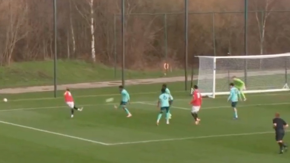 Thần đồng 15 tuổi JJ Gabriel ghi bàn thắng rất đẹp giúp U18 MU đè bẹp U18 Wolves 3-1.