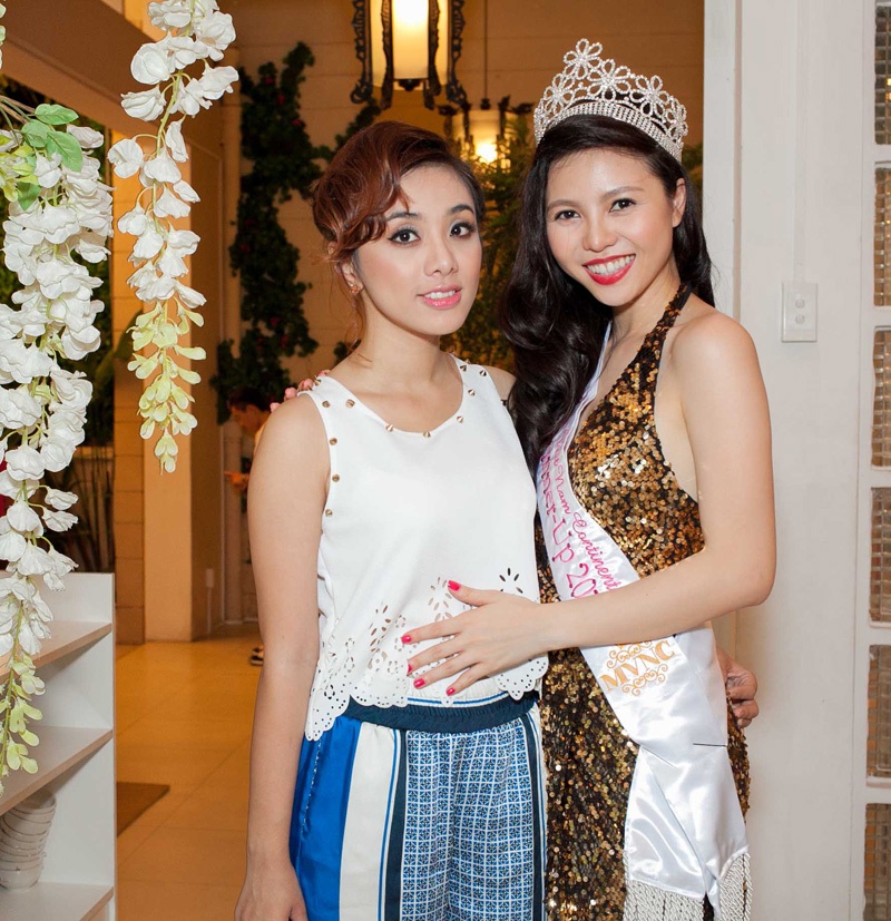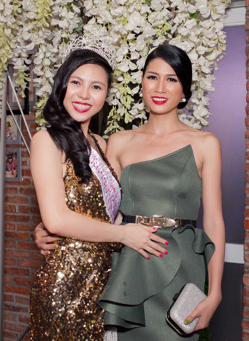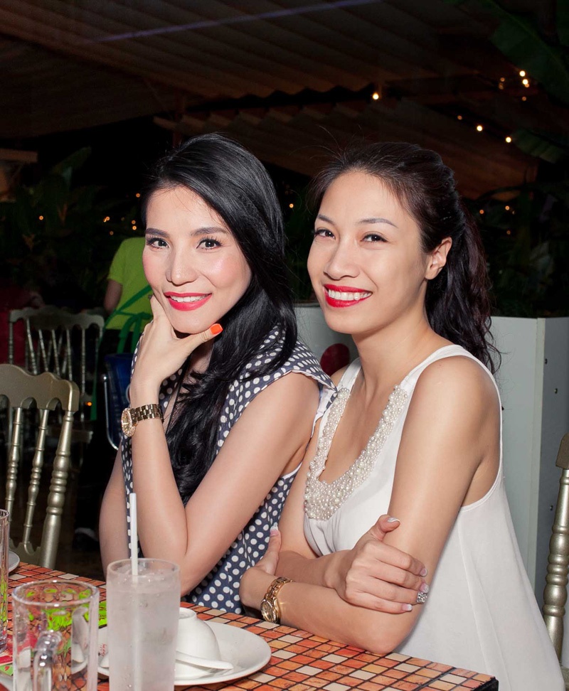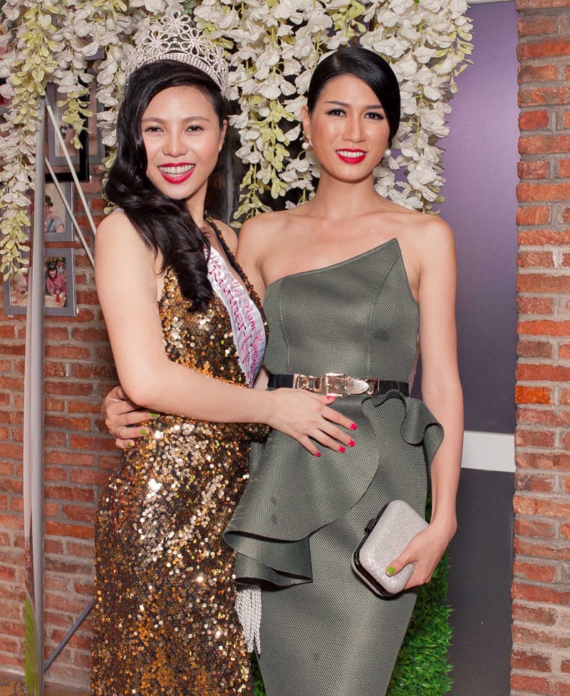 | Trà Giang chụp hình cùng người mẫu Như Vân - nữ người mẫu từng gây xôn xao với cảnh nóng trong MV Xin lỗi em chỉ là của ca sĩ Hoàng Lê Vi. |