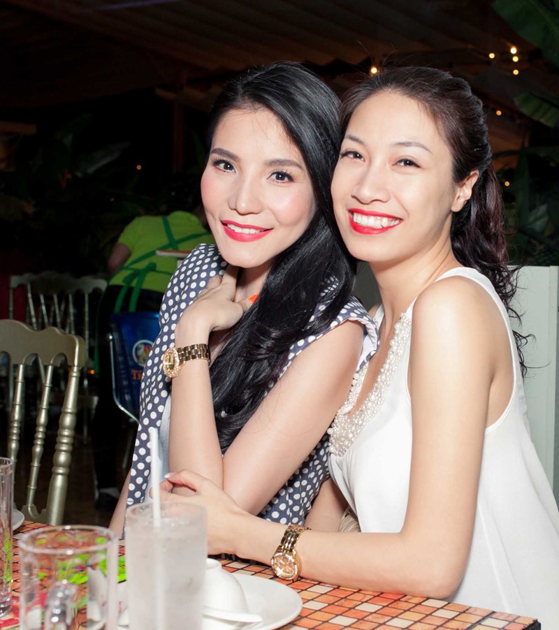 Nữ ca sĩ đất Cảng lần đầu xuất hiện sau khi dừng chơi tại Cuộc đua kỳ thú. Pha Lê và ca sĩ Kiwi Ngô Mai Trang ăn mặc giản dị khi dự tiệc. Cả hai chọn một bàn riêng để tám chuyện trước khi buổi tiệc bắt đầu. |