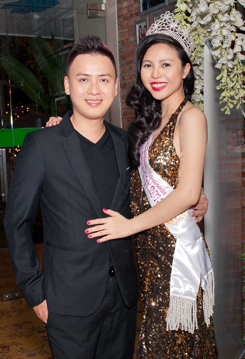 | Ông bầu Vũ Khắc Tiệp cũng tranh thủ đến chúc mừng chân dài làng mẫu. |